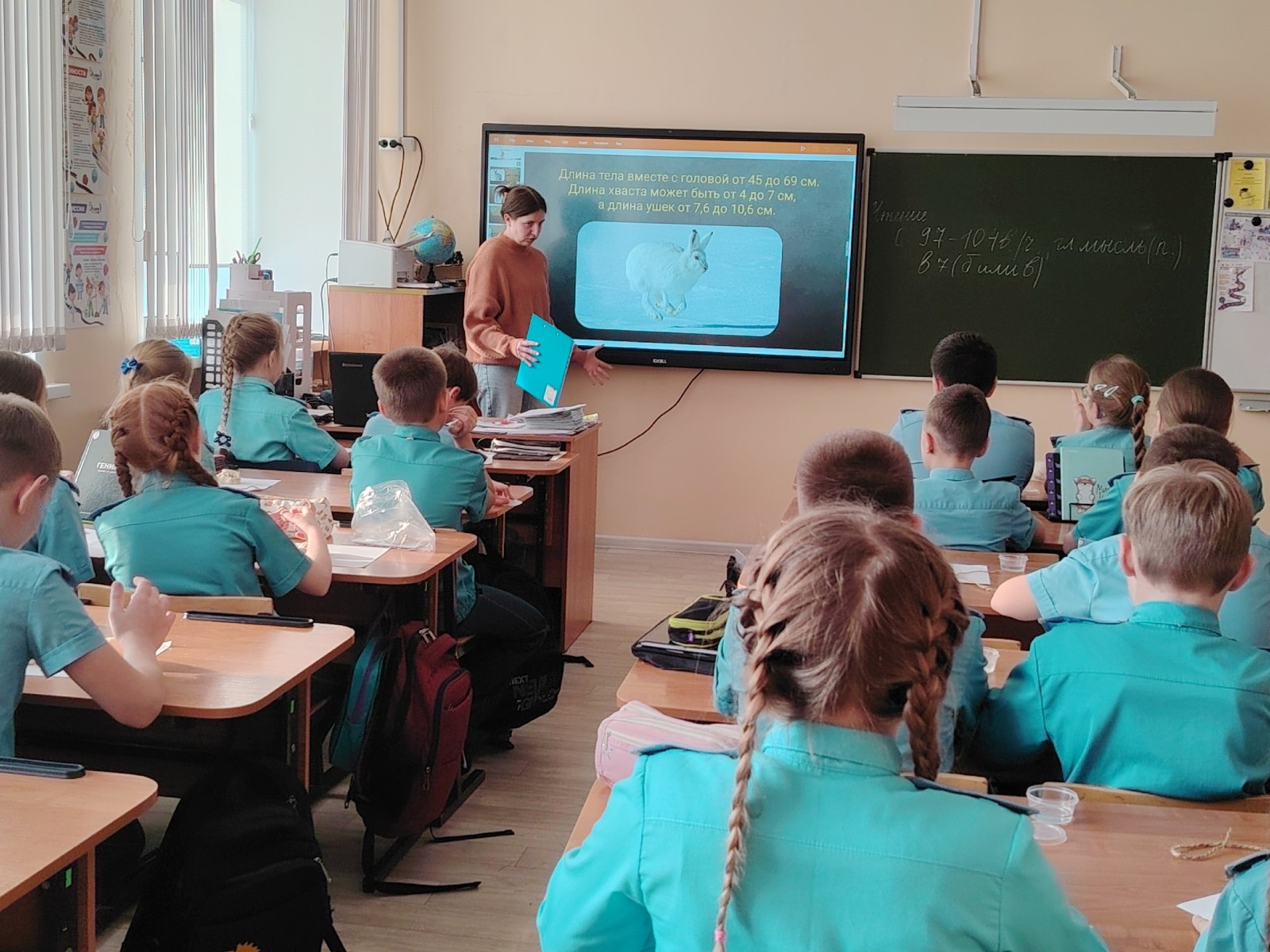 Сегодня сотрудники национального парка «Русский Север» провели увлекательный мастер-класс, посвященный зайцу-беляку, для учеников 4-го класса Кирилловской средней школы.