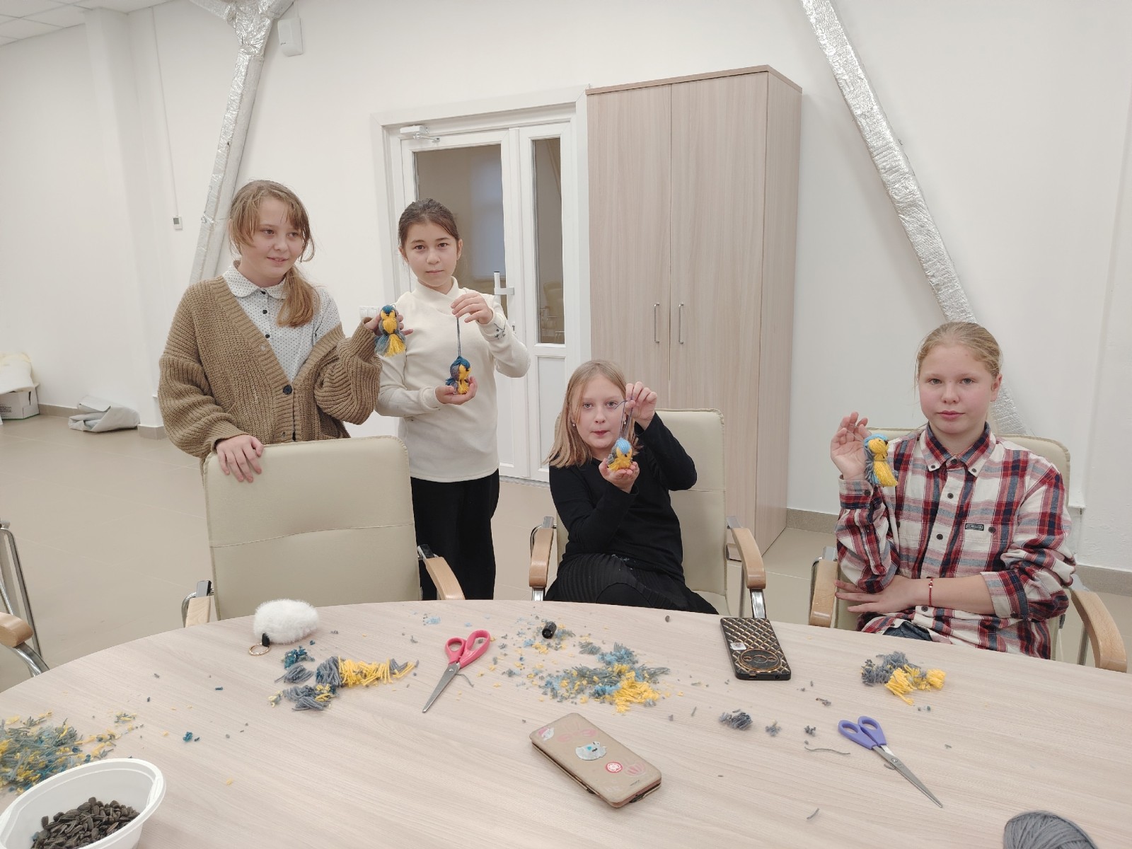 Сотрудники парка провели для ребят занимательный мастер‑класс «Синичка», на котором участники освоили технику создания милых птичек из ниток.