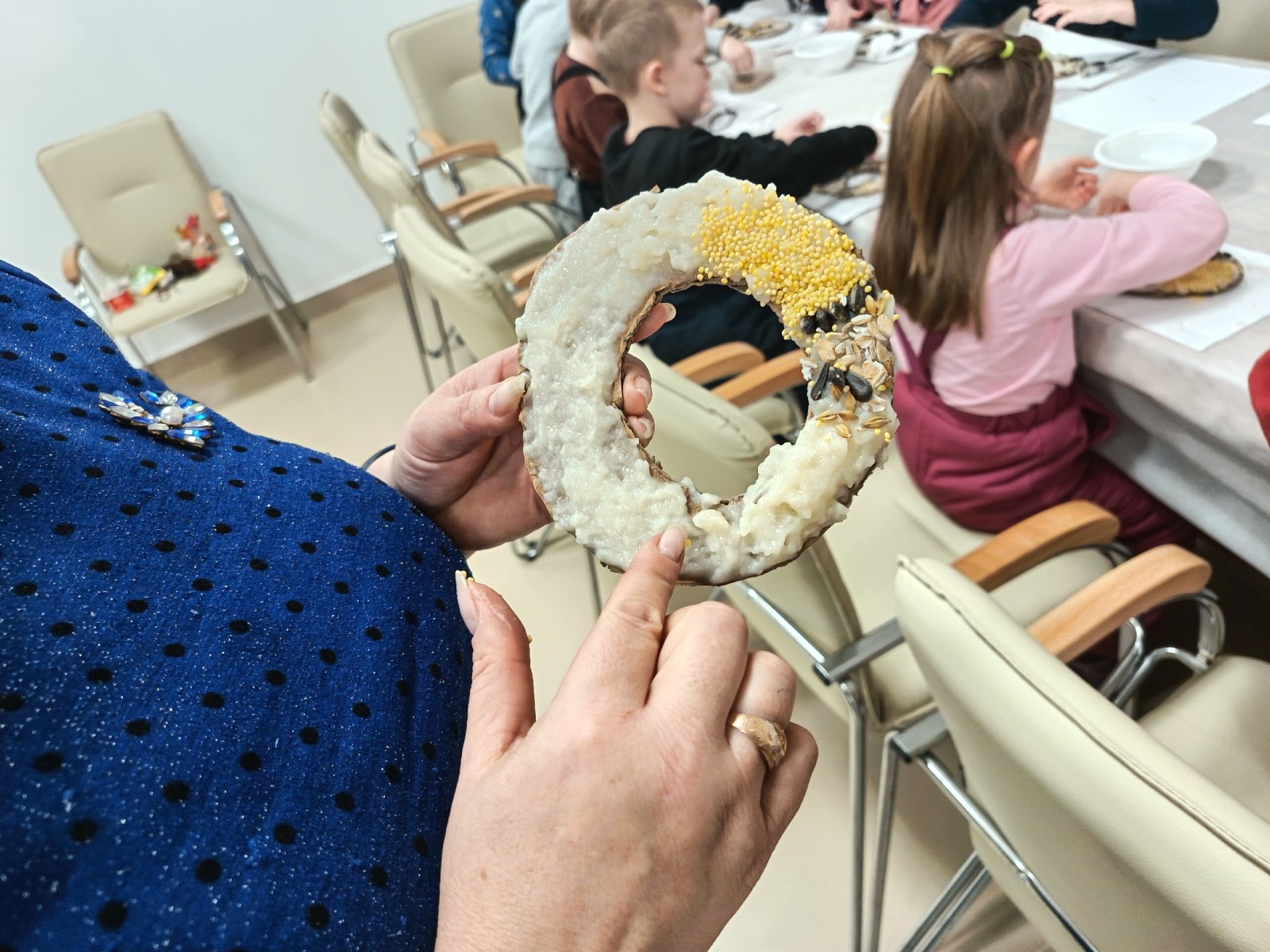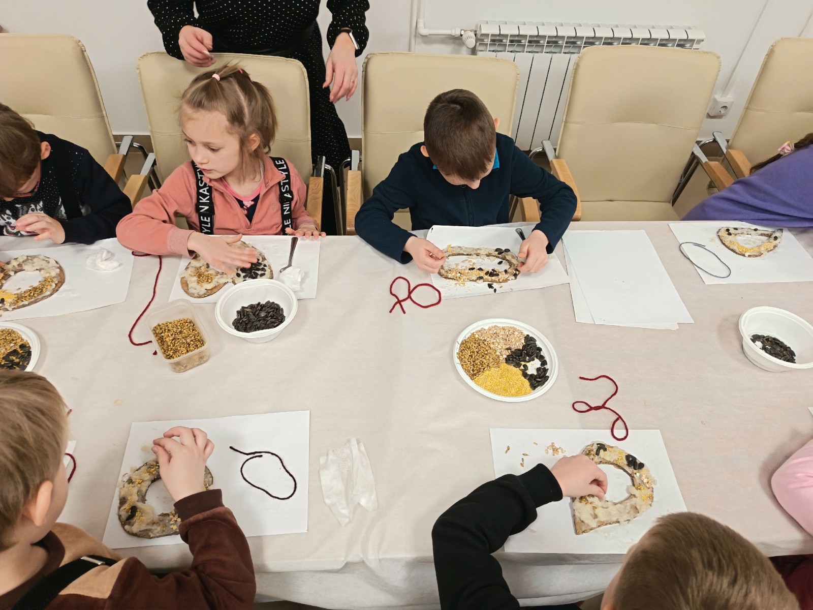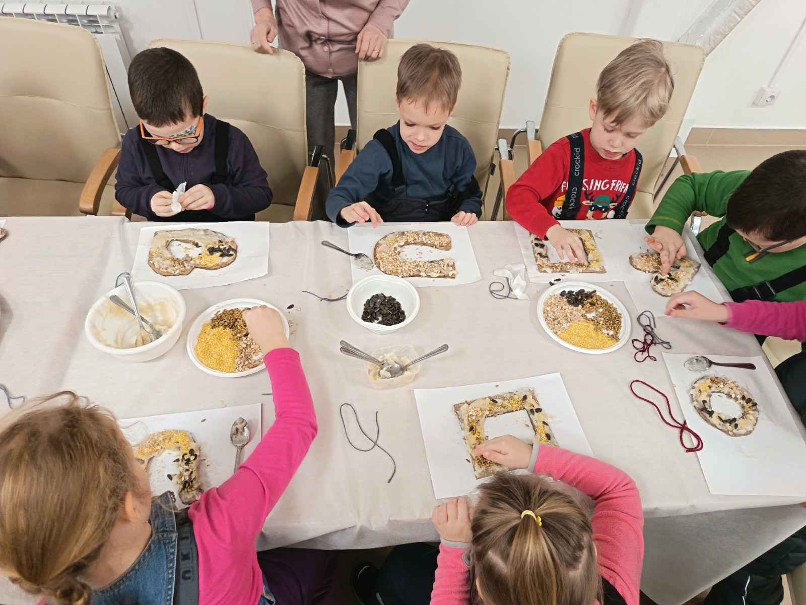 Ребята с большим желанием принялись за дело: своими руками они создали питательные и «вкусные» кормушки, используя семечки подсолнечника, ячмень, пшено и овсянку. Каждый участник вложил в работу фантазию и старание, превращая простые ингредиенты в настоящие угощения для пернатых друзей.